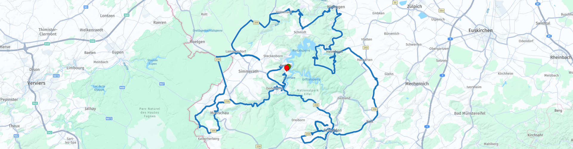 Die Route verläuft auch buchstäblich entlang der belgischen Grenze und die Stadt Rurberg ist von Belgien aus leicht und schnell zu erreichen. Außerdem ist die Route nicht zu lang und kann problemlos in einem halben Tag zurückgelegt werden, wenn Sie die Besuche natürlich weglassen. Die Route wird jedoch aufgrund ihrer Technik und der Geschwindigkeit, mit der die Kurven folgen, auch für einen mehrtägigen Aufenthalt empfohlen. Darüber hinaus befindet sie sich in einer Region, die aufgrund verschiedener Aspekte und Perspektiven interessant genug ist, um dort mehrere Tage zu bleiben. Aus all diesen Gründen verdienen nicht nur die Route, sondern auch die Umgebung eine Fünf-Sterne-Bewertung.