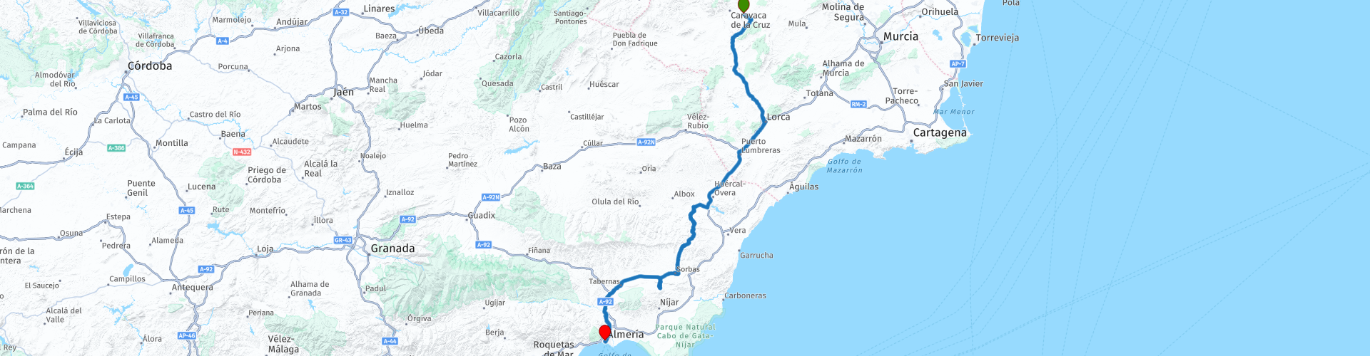 This time the trip goes from Cehegín, part of the Bullas wine region, to the Mediterranean port of Almeria, where ferries depart for Morocco and Algeria.