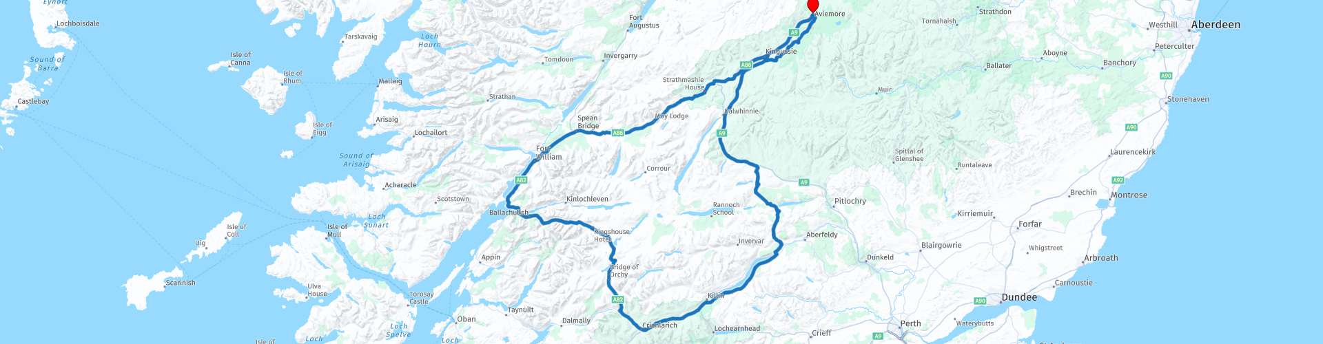 Roundtour Aviemore over Crianbarich passing by Fort William en Glen Coe