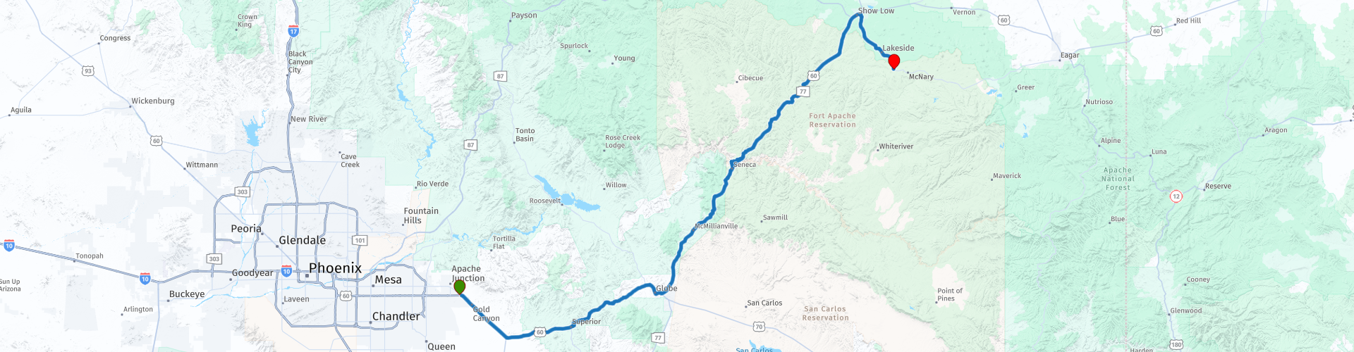 The analyzed itinerary traces a masterful segment of US Route 60, transitioning the traveler from the periphery of the Phoenix metropolitan area, characterized by Sonoran Desert foothills, across profound geological barriers, and into the high-elevation riparian and forested landscape of Arizona’s White Mountains.