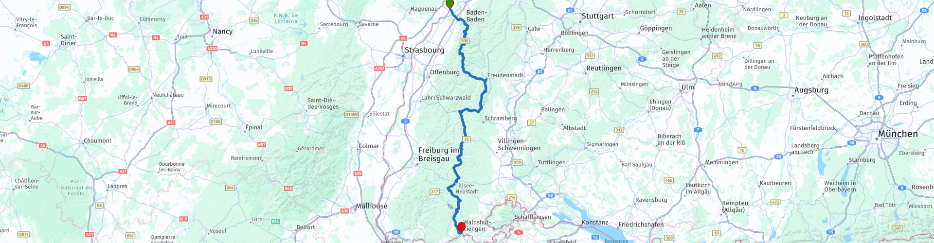 The route ends again on the Rhine, which this time forms the border between Germany and Switzerland.