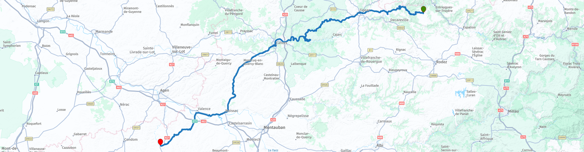Ce voyage suit l'itinéraire entre Sénergues et Lectoure.