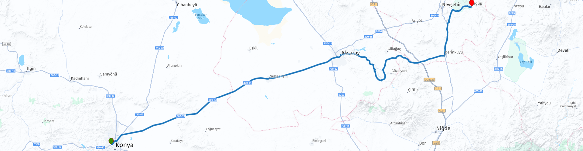 De reis van Konya en zijn moskeeën voert je naar Ürgüp over de uitgestrekte vlaktes van Anatolië naar het surrealistische hart van Cappadocië. Soepele snelwegen leiden je langs de karavanserai van Sultanhanı en de vulkanische kloof van de Ihlara-vallei, voordat je afdaalt naar de ondergrondse steden Derinkuyu en Kaymaklı. Bij het naderen van Ürgüp verandert het landschap in een wereld van sprookjesachtige schoorstenen, grotwoningen en gloeiende rotsvalleien. Het is een gemakkelijke, vloeiende rit die scherpe bochten afwisselt met spectaculaire landschappen, een route die geschiedenis, cultuur en geologie combineert tot één onvergetelijke passage door de meest magische regio van Turkije.