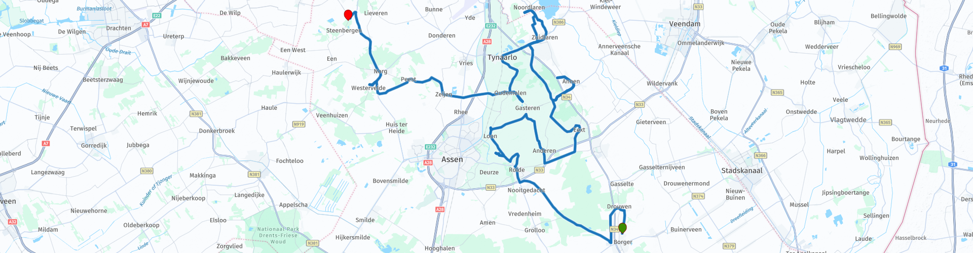 Gezien de prachtige hunebedden, het afwisselende landschap en de leuke weggetjes waar je overheen komt, waardeer ik deze route met 4 sterren.